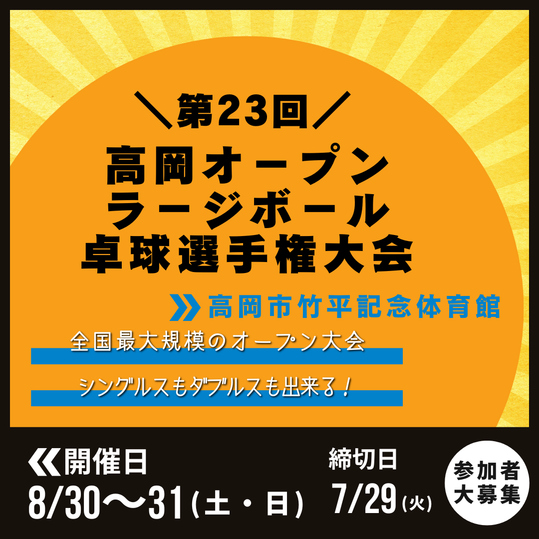 2025/08/30~31 ニッタク杯 第23回高岡オ-プンラ-ジボ-ル卓球選手権大会
